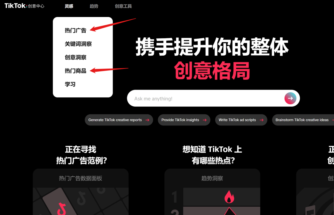 TikTok创意中心从TikTok收集数据,允许用户搜索流行的标签、歌曲、视频和达人,所有这些都按行业细分。如果TikTok是你主要的销售或广告渠道,你可以在TikTok Creative Center找到合适的赛道。