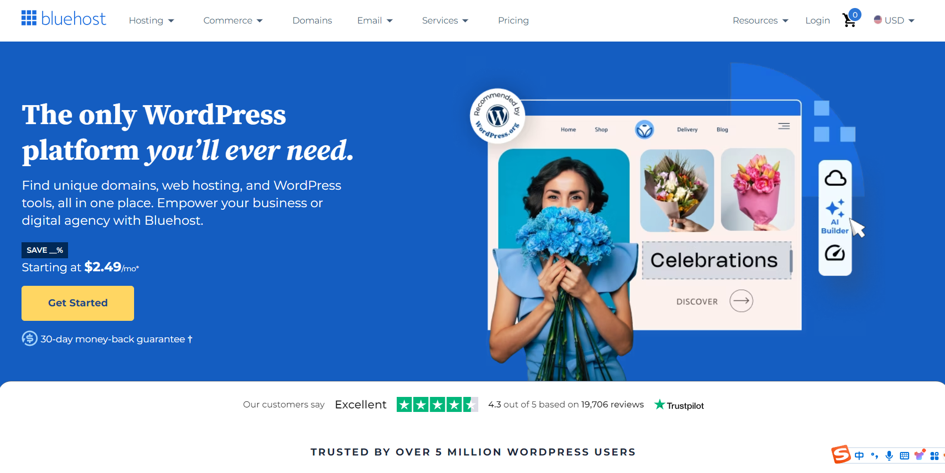 Bluehost 提供适合任何预算要求的经济实惠的入门计划,并且它们经常被评为排名第一的网络托管提供商。他们的托管计划提供了大量的功能和出色的支持。